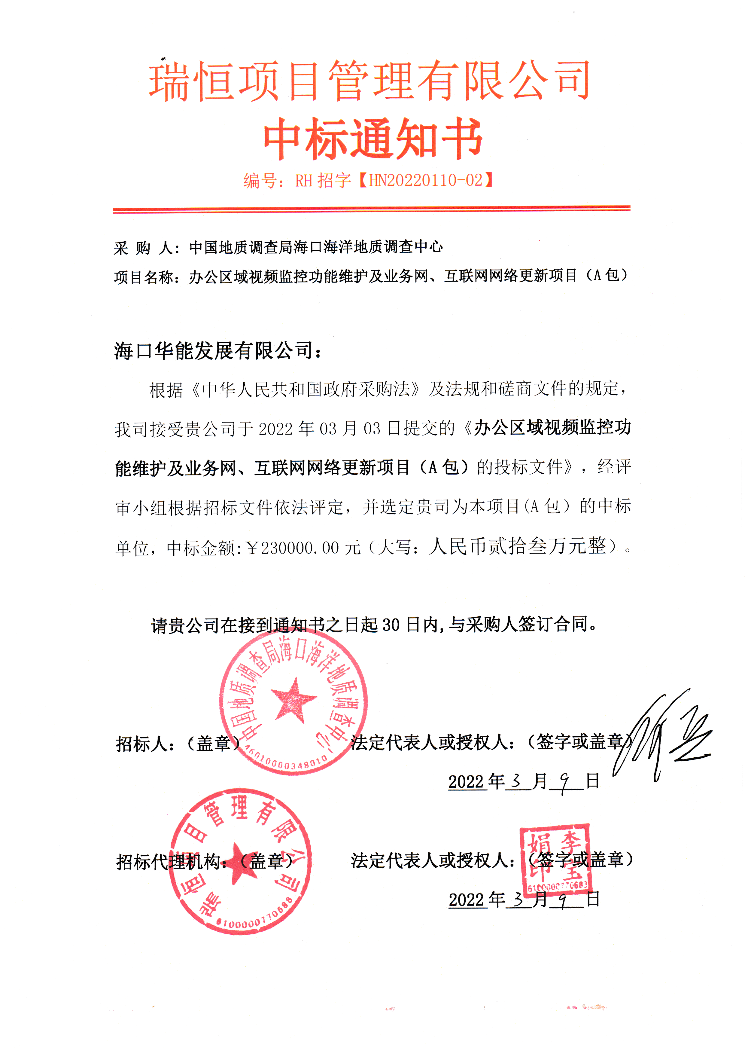 祝賀我司中標中國地質(zhì)調(diào)查局海口海洋地質(zhì)調(diào)查中心項目